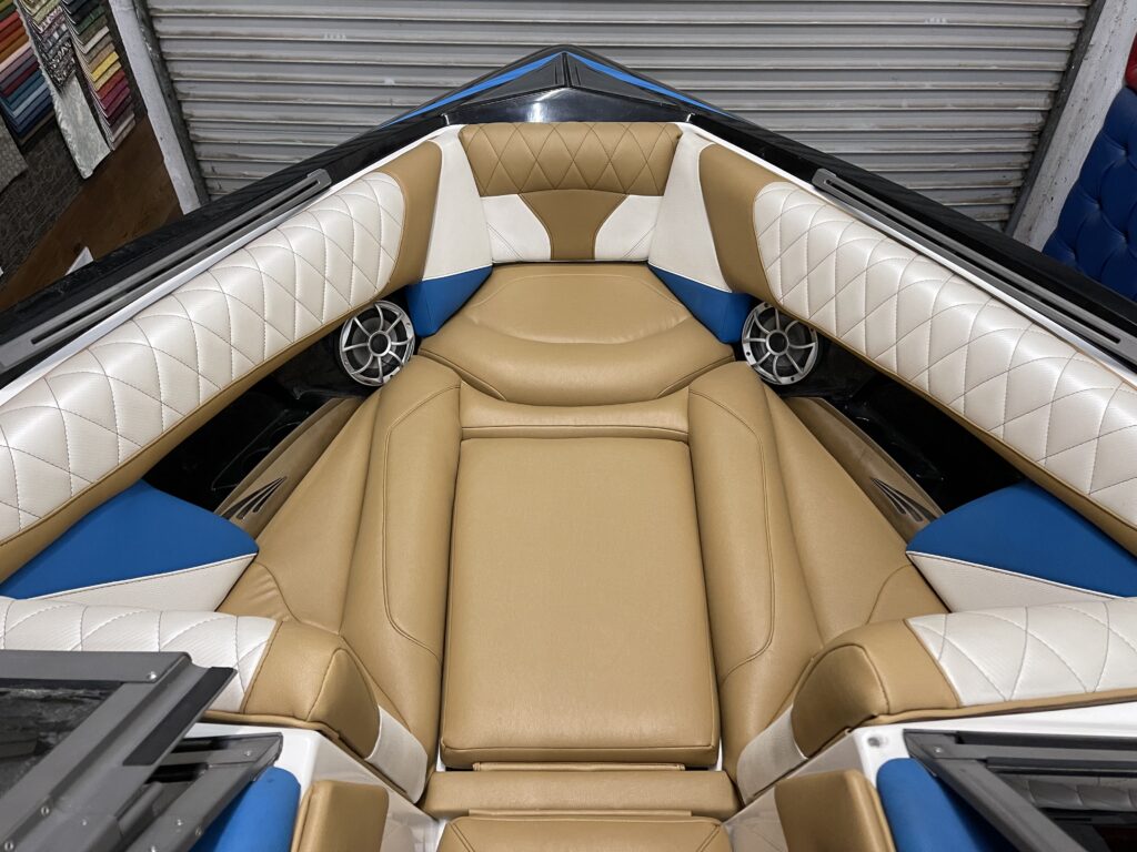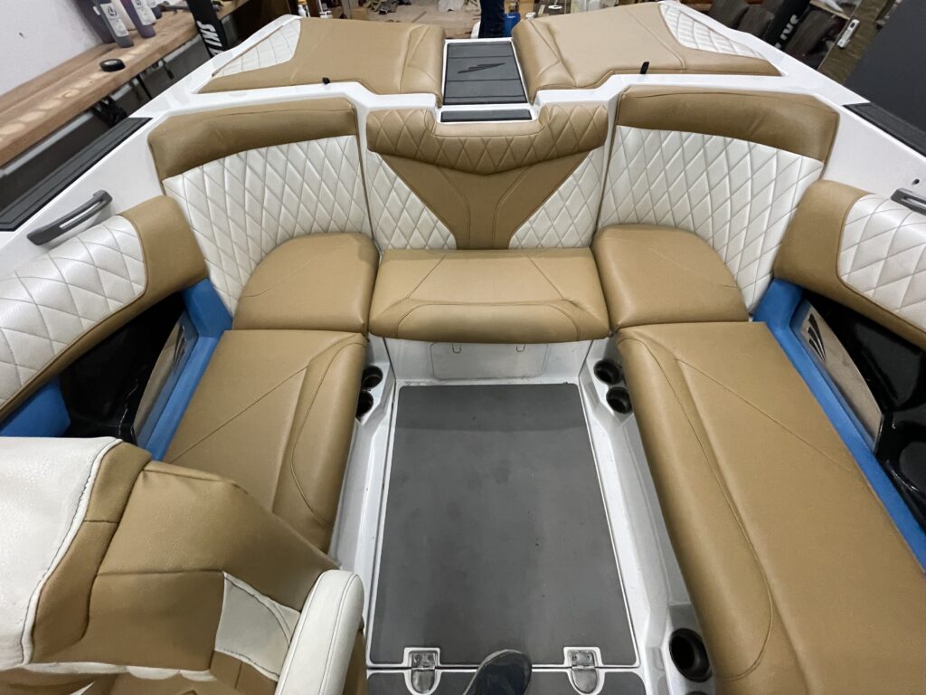 For this project, we selected high-quality boat vinyl, known for its durability and aesthetic appeal. This choice of material guarantees that the furniture will not only look great but also withstand the harsh conditions often encountered on the water.